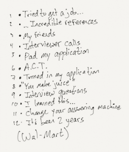 The picture on the left was the original bit I wrote about being turned down for a job at Jamba Juice. The picture on the left segues into my experience working at Walmart, a bit that I still perform. All told, this set list represents 21 jokes directly, but it indirectly represents over 15 minutes of material.